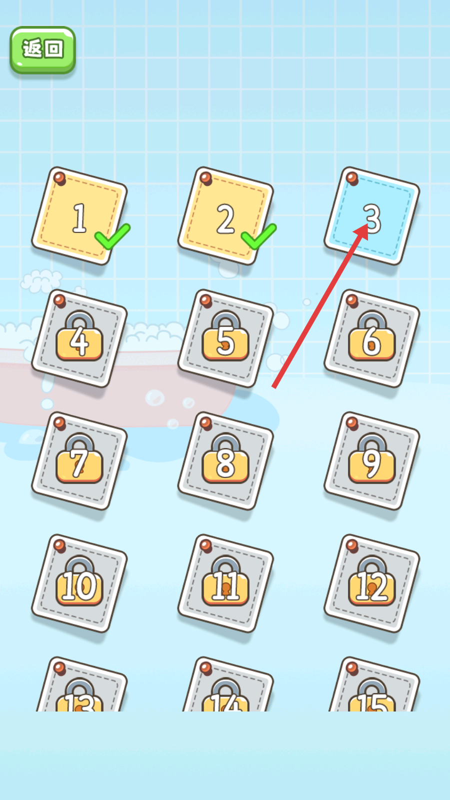 1、进入关卡选择界面,优先挑战已解锁的关卡,像【3】这样的关卡,能逐步推进游戏进度。
