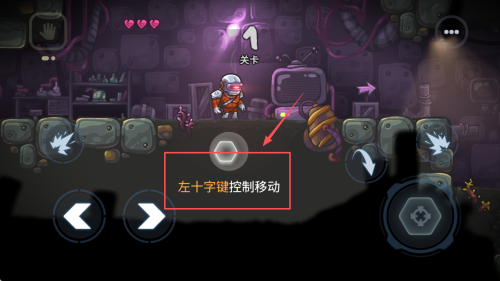 3、如何控制角色移动?使用屏幕左侧的十字键控制角色向上下左右移动。