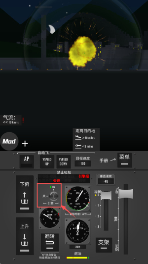 4、如何开始飞行?进入驾驶界面后,观察气流与距离,点击“AP”自动驾驶,随时点“菜单”可暂停或返回。