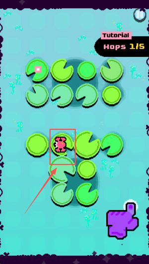 2、接着,通过教程学习基本操作,点击屏幕上的青蛙进行跳跃。