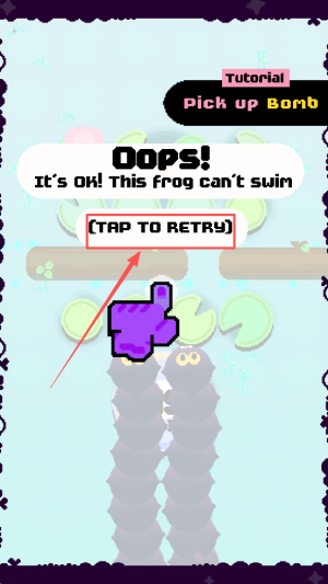 4、最后,如果青蛙掉入水中,点击“重试”按钮重新开始游戏。
