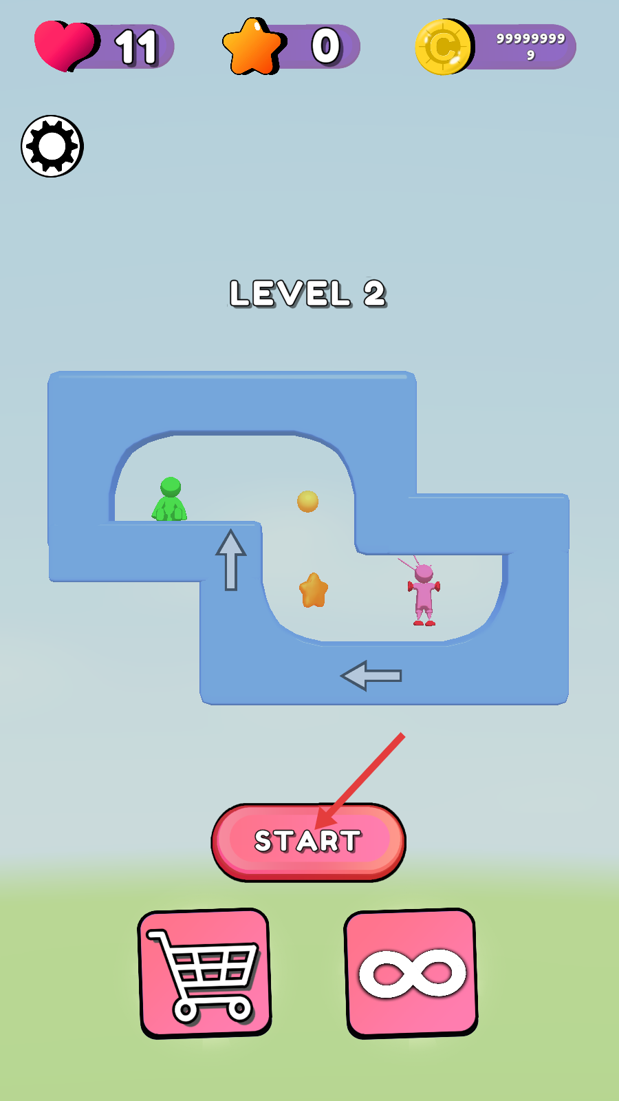1、进入【LEVEL-2】后,点击【START】按钮开启关卡,准备操控角色开始挑战。