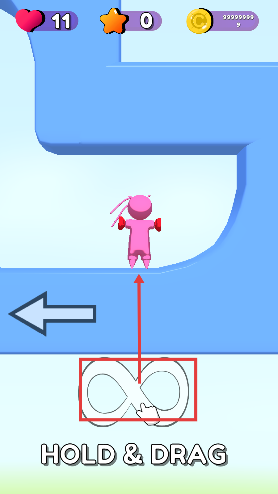 2、挑战中需按住并拖动下方无限符号控件,控制粉色角色的移动方向,以此在场景中行动。