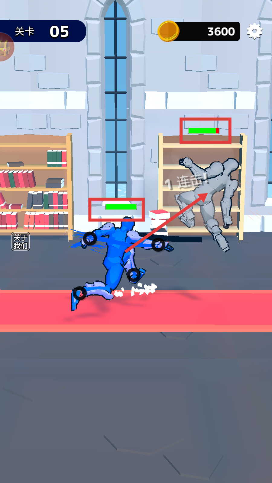 2、战斗时操控蓝色角色攻击红色敌人,留意双方血量条,打出连击能更高效消耗敌方血量。