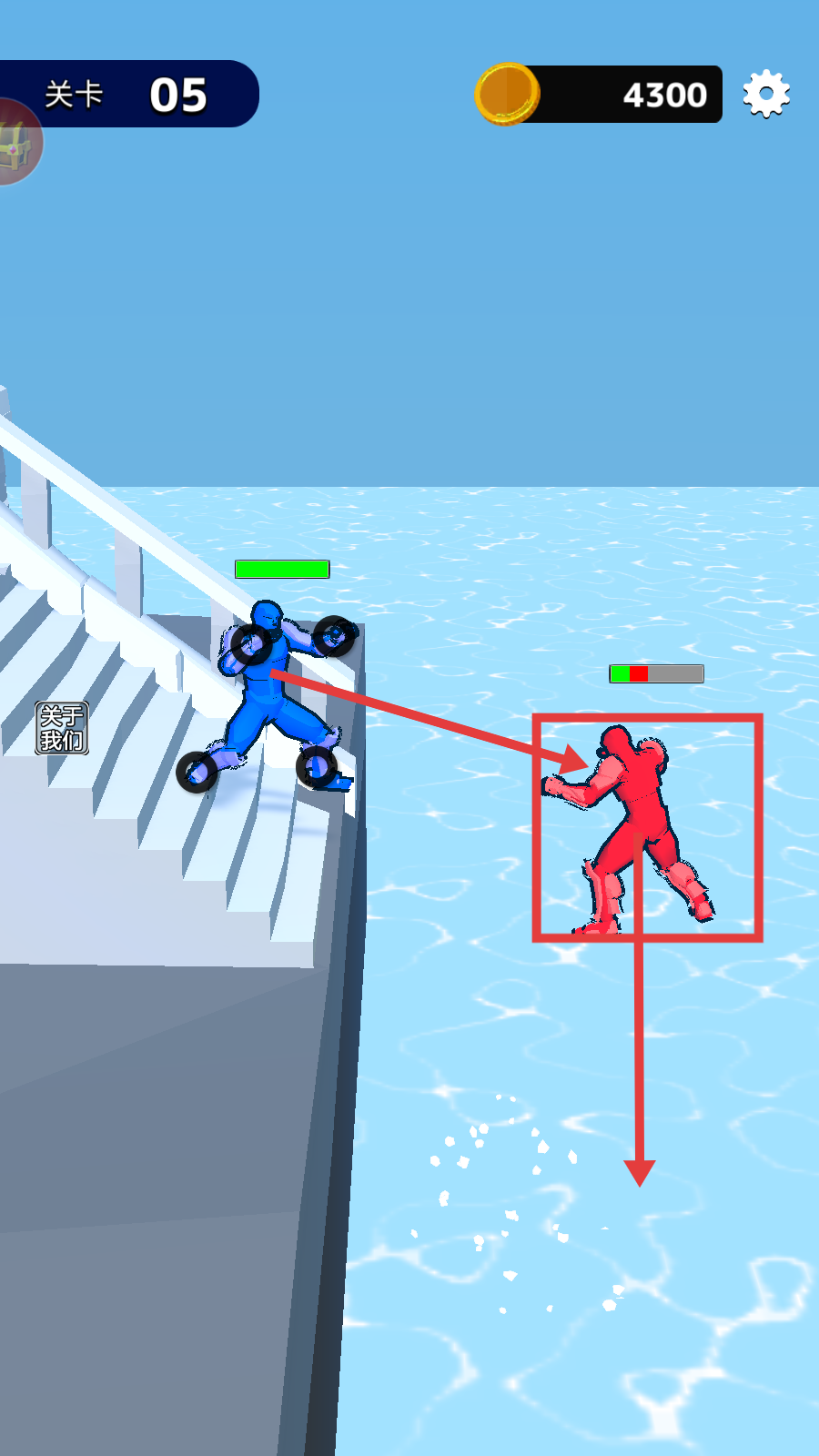 3、在水边场景对战,找准时机将红色敌人击落到水中,借助地形优势快速击败敌人。