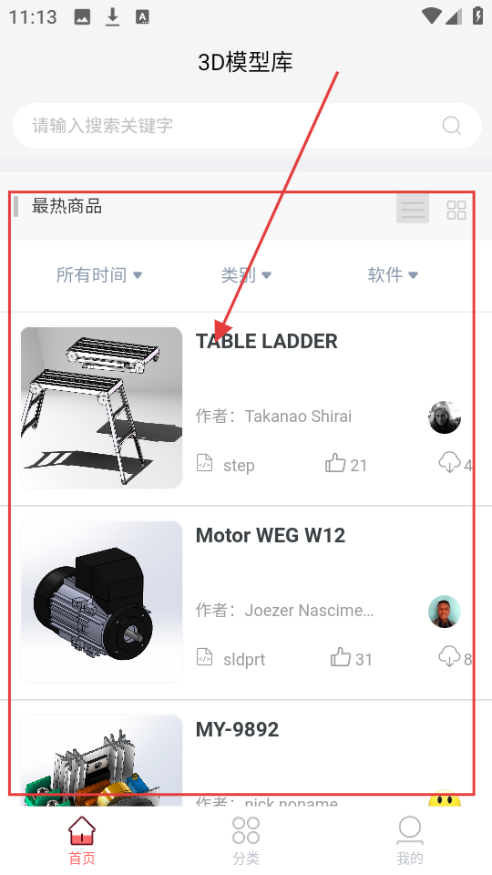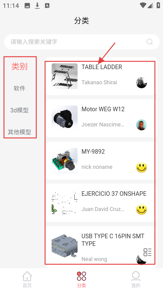 4、到分类页,有【类别】【软件】等分类,选【类别】,查看各类下的3D模型,找想要的模型。