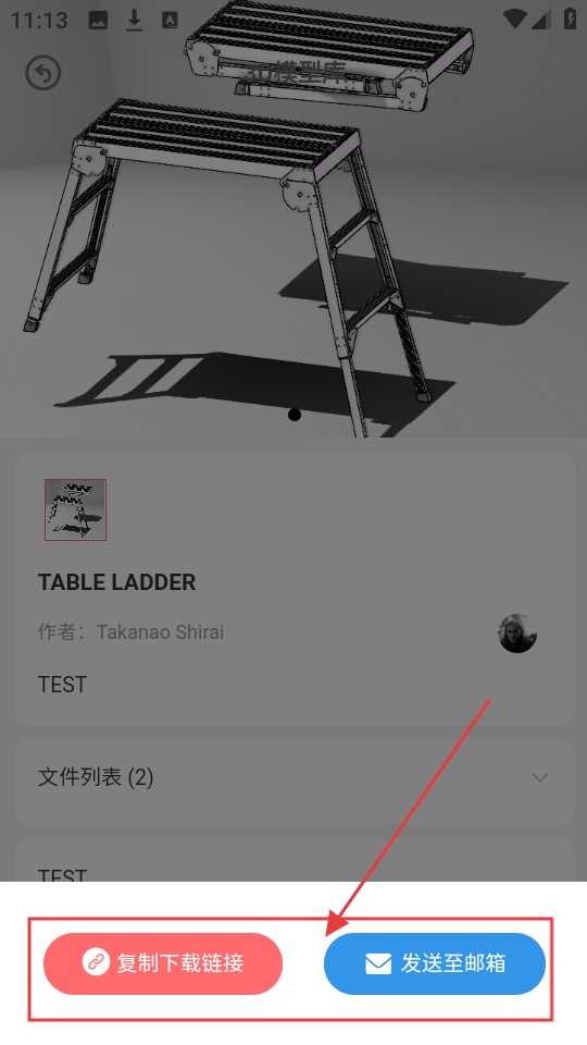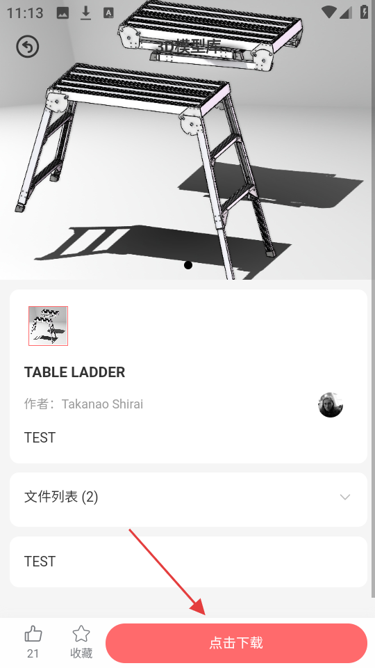 2、在【TABLE-LADDER】模型详情页,查看模型展示,点【点击下载】,触发下载选项弹窗。