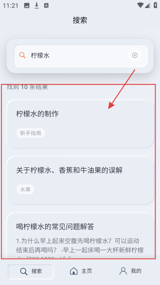 3、搜索【柠檬水】后,出现【柠檬水的制作】等结果,选【柠檬水的制作】,进入该文章详情页。