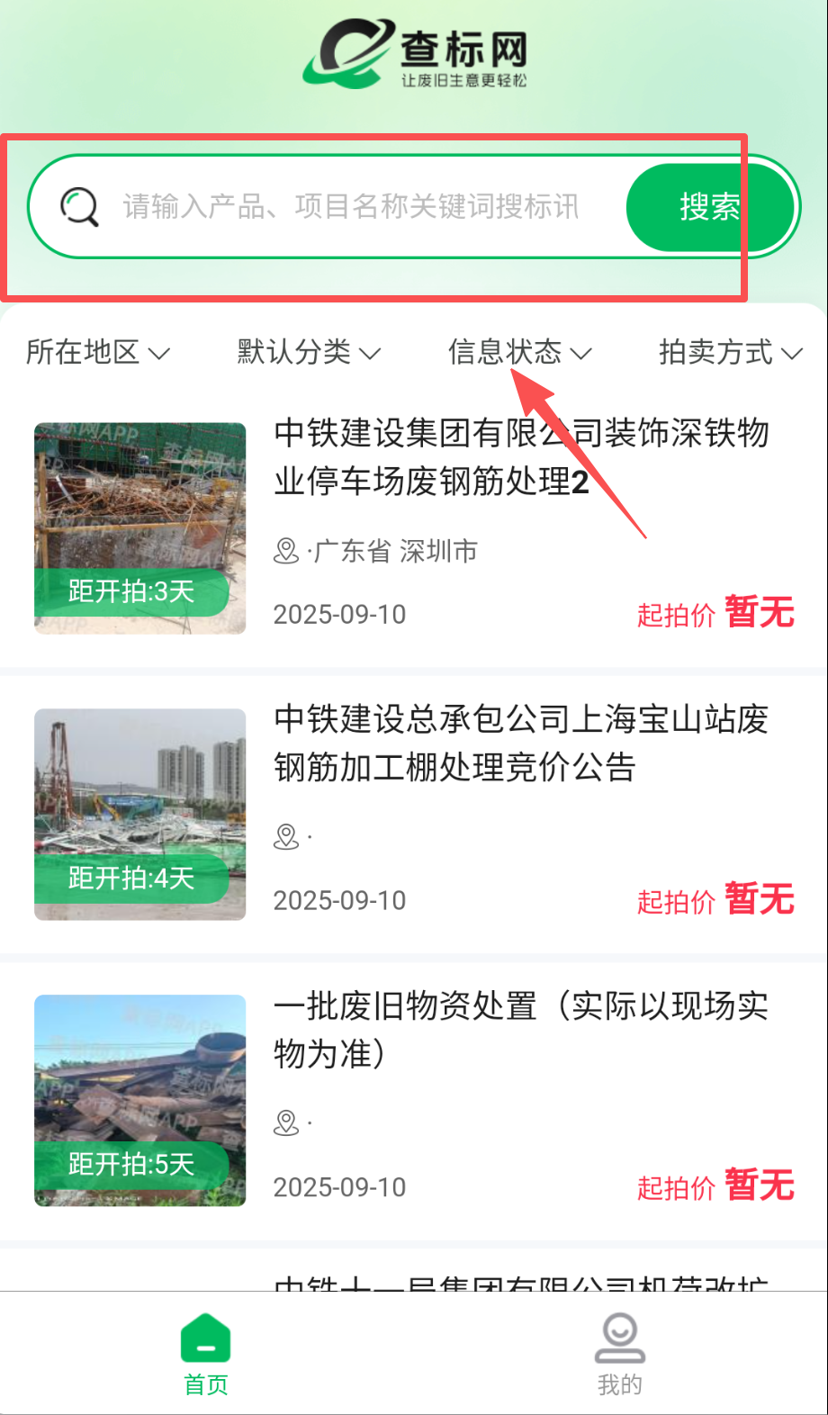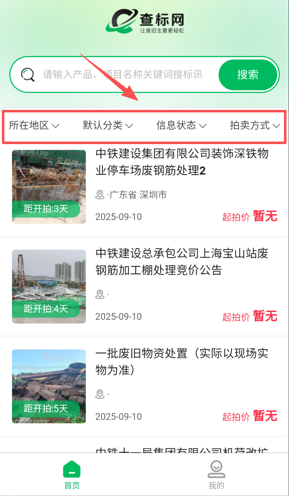 1、 登录后进入项目筛选页设置地区(如华东)、分类(金属废料)、状态(招标中)等条件,系统实时推送匹配项目列表。