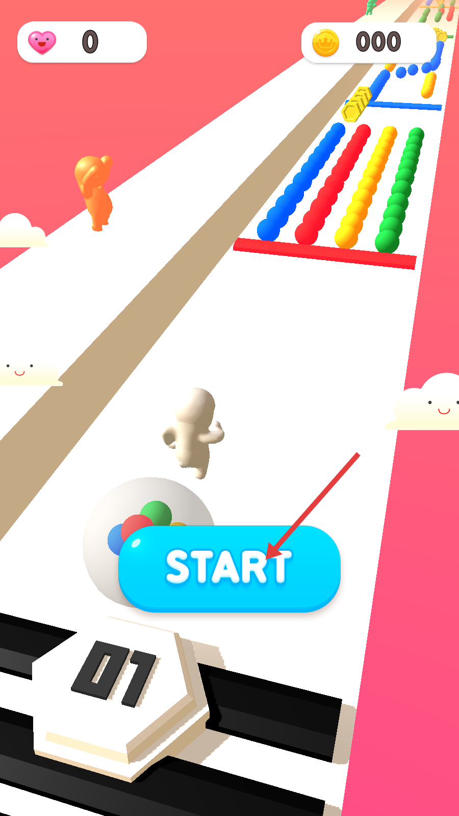 1、点击蓝色【START】按钮,开启游戏关卡,进入彩色小球收集与射击的挑战流程。