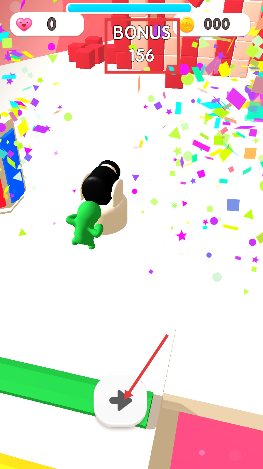 4、成功击碎障碍物后,会获得【BONUS】奖励,点击下方箭头类按钮可继续推进游戏进程。