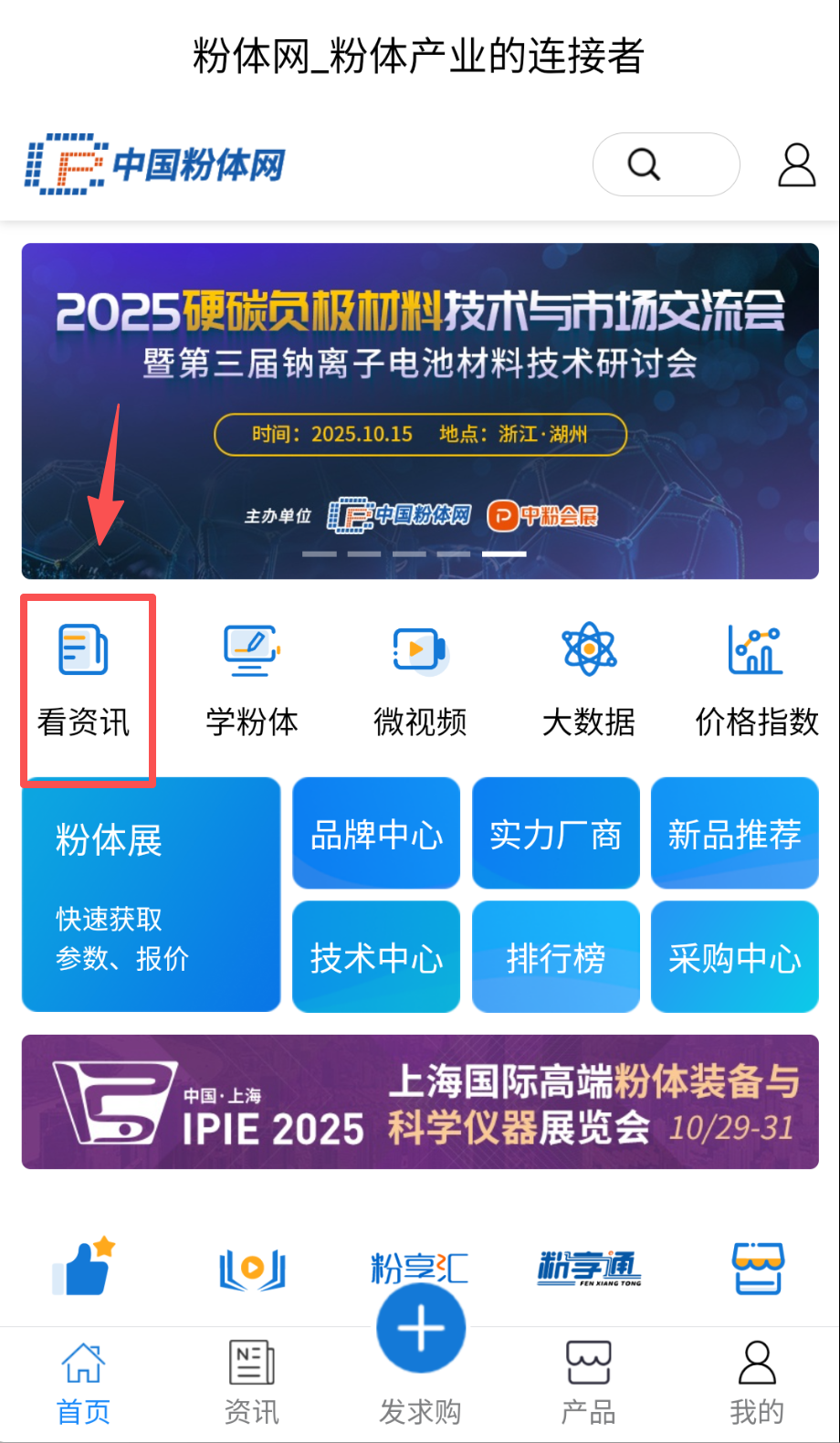 1、 登录后进入"看资讯"板块浏览行业动态,按材料类别(纳米/金属粉体)筛选目标信息,收藏重要政策解读与技术突破文章构建知识库。
