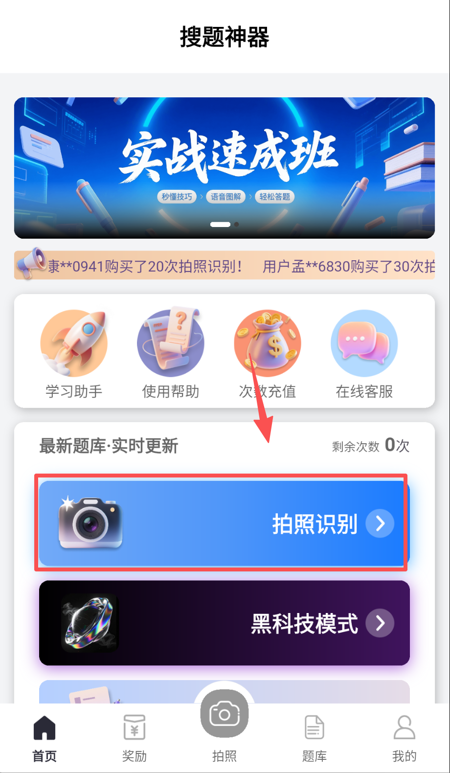 1、 打开APP进入拍照搜题界面,对准题目拍照或手动输入关键词,系统自动识别题干并匹配题库答案,3秒内显示解析与关联法规条款。