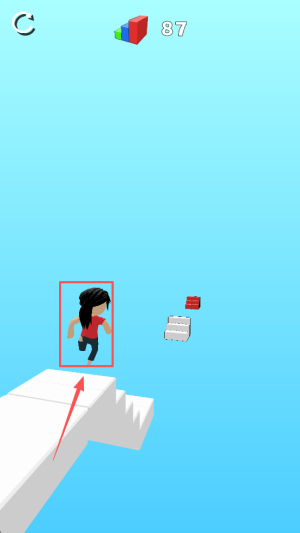 2、接着,通过点击屏幕让角色跳跃,收集途中的方块。