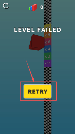 4、最后,如果游戏失败,点击“RETRY”按钮重新开始本关。