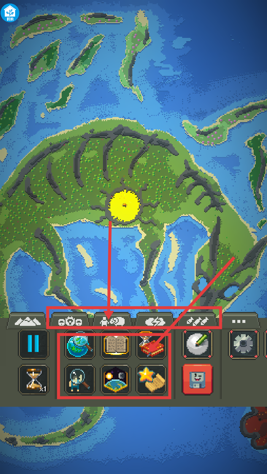 1、在世界地图界面,利用下方【地球仪】【书本】等功能图标,查看或操作地图相关内容,推进游戏进程。