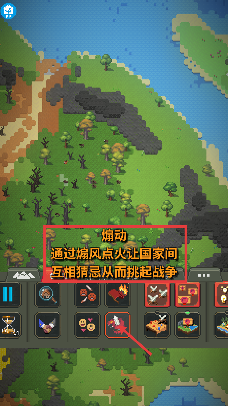 4、运用【煽动】技能,通过煽风点火让国家间互相猜忌从而挑起战争,以此改变游戏局势。
