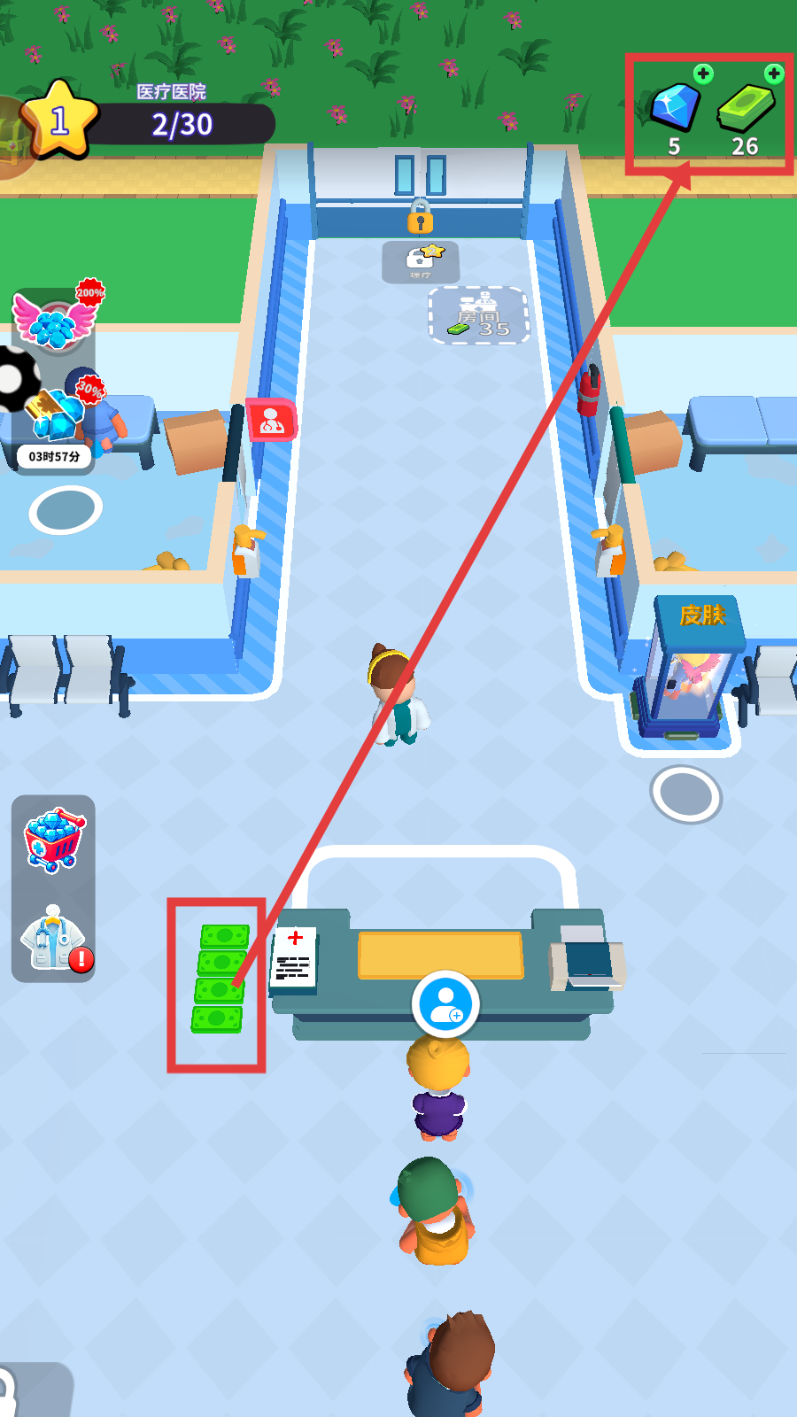 4、成功治疗患者后,能获取金钱等资源,积累的资源可用于医院后续的升级或解锁新功能。