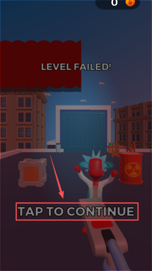 4、最后,如果失败,点击“TAP TO CONTINUE”按钮继续游戏。