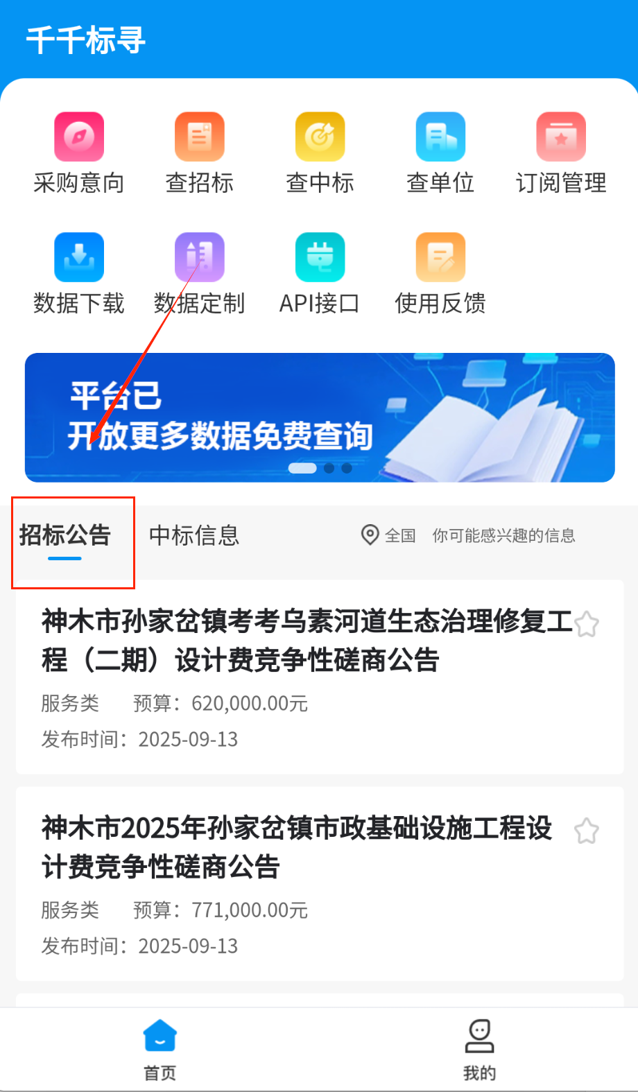 2、平台所有招投标查询服务完全免费,无需开通会员或额外付费,帮助用户省心省钱。
