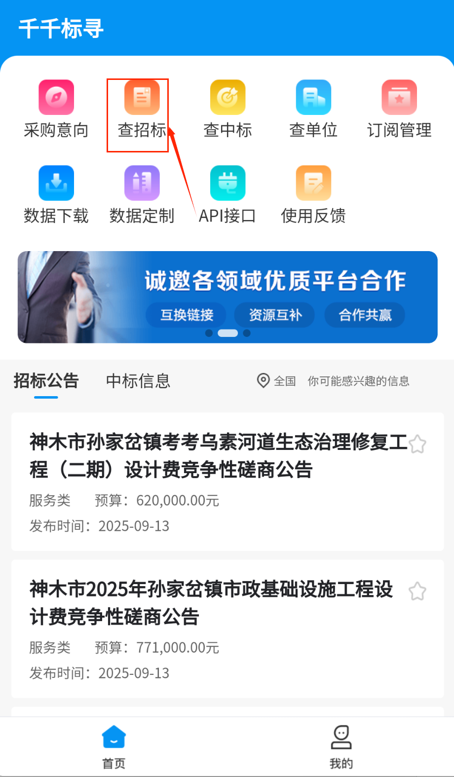 千千标寻是专注于招投标领域的综合性服务平台,致力于为用户提供高效便捷的投标服务,平台汇聚大量招标公告,支持详细查询与订阅推送,帮助用户及时获取商机,平台所有信息权威可靠,涵盖招标与中标数据查询、企业信息检索及资料下载等功能,助力用户轻松完成投标工作。