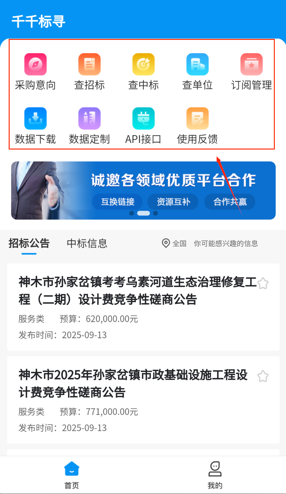 千千标寻通过提供全面且高效的招投标服务,帮助用户实时获取商机并高效完成投标工作,其免费查询与个性化订阅功能,并且可以极大提升了用户体验,同时是招投标领域不可或缺的实用工具,并且可以拓展项目资源。