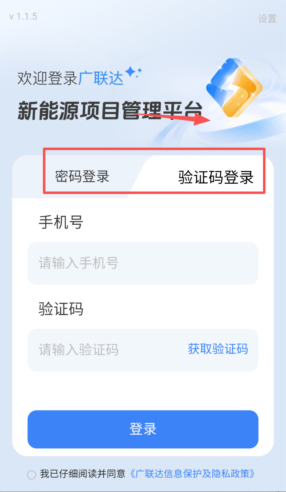 2、 登录软件很方便呢,打开应用看到欢迎界面,选“密码登录”或“验证码登录”都可以,比如验证码登录就填好手机号,点“获取验证码”等短信。