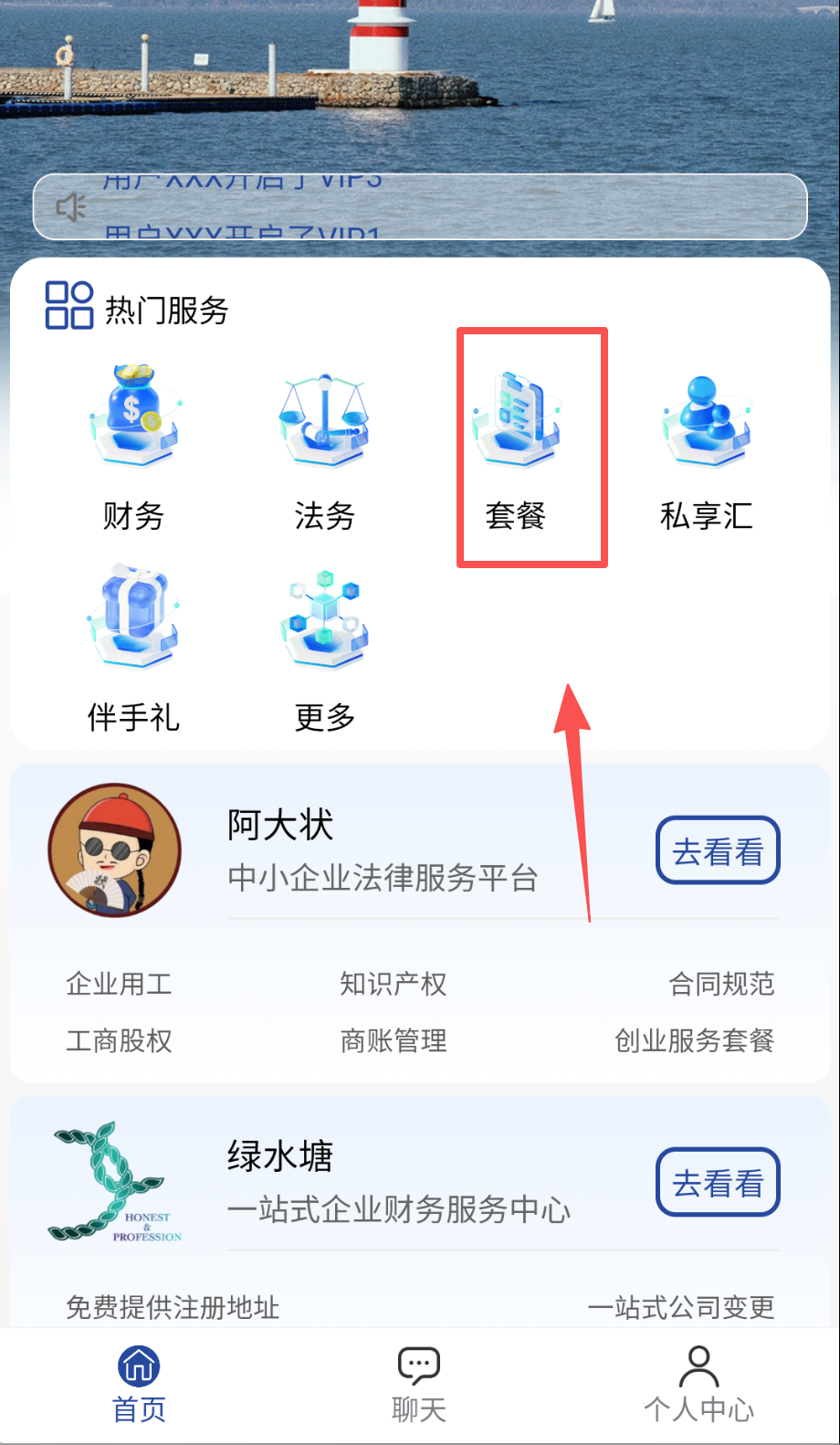 4、 进入套餐中心,根据企业规模选择基础版或尊享套餐,包含法务、财税、礼赠组合服务,激活后享优先响应。