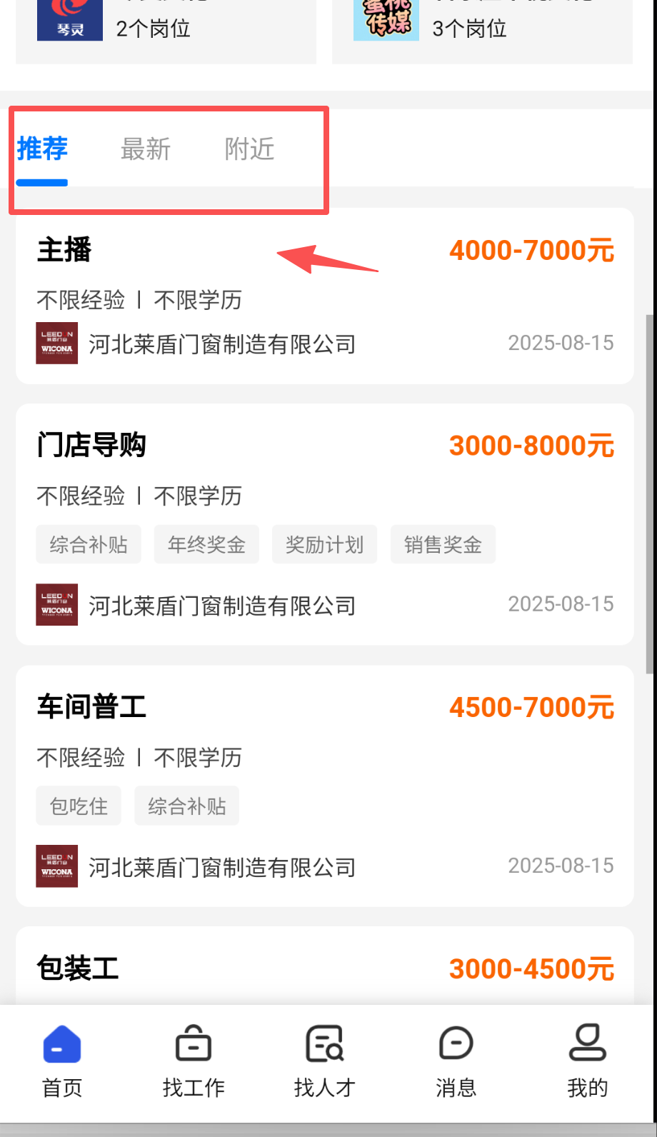 2、 在首页浏览智能推荐岗位,或使用分类筛选功能按行业、薪资、距离等条件精准定位目标职位,一键收藏心仪岗位。