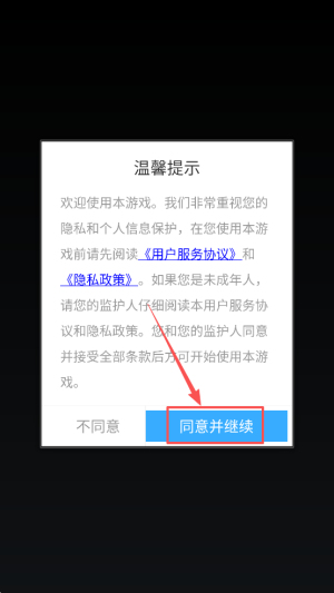 1、首先,同意游戏的隐私政策,点击“同意并继续”按钮。