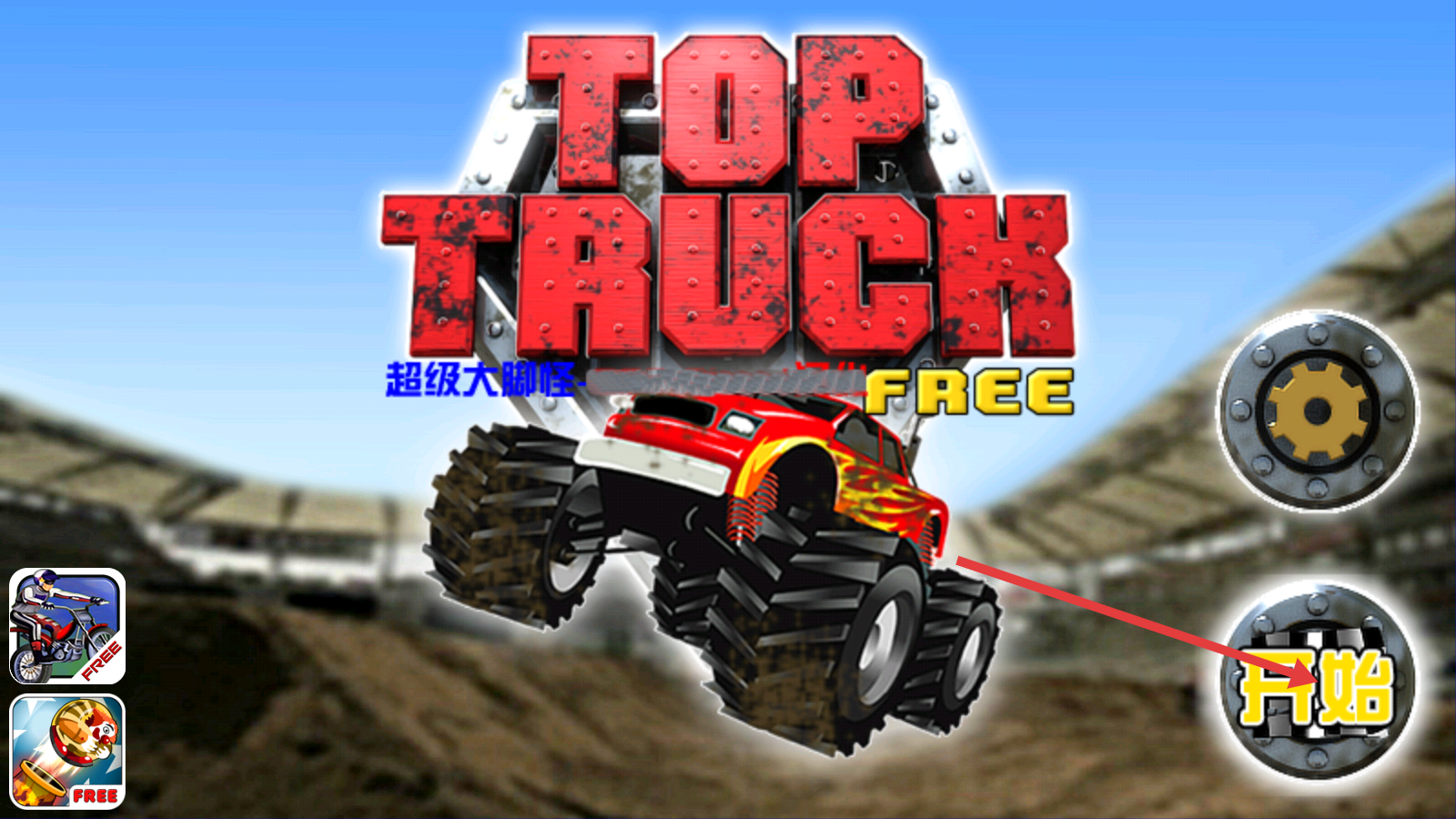 1、进入游戏后,点击界面右侧的【开始】按钮,开启《TopTruck》的大脚车驾驶冒险,进入关卡挑战。