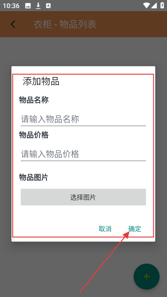 2、进入衣柜物品列表页,点右下角【+】号,弹出添加物品窗口,可开始添加衣柜物品。