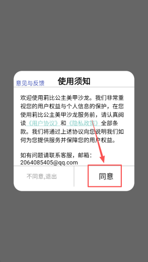 1、首先,阅读并同意使用须知,点击“同意”按钮继续。