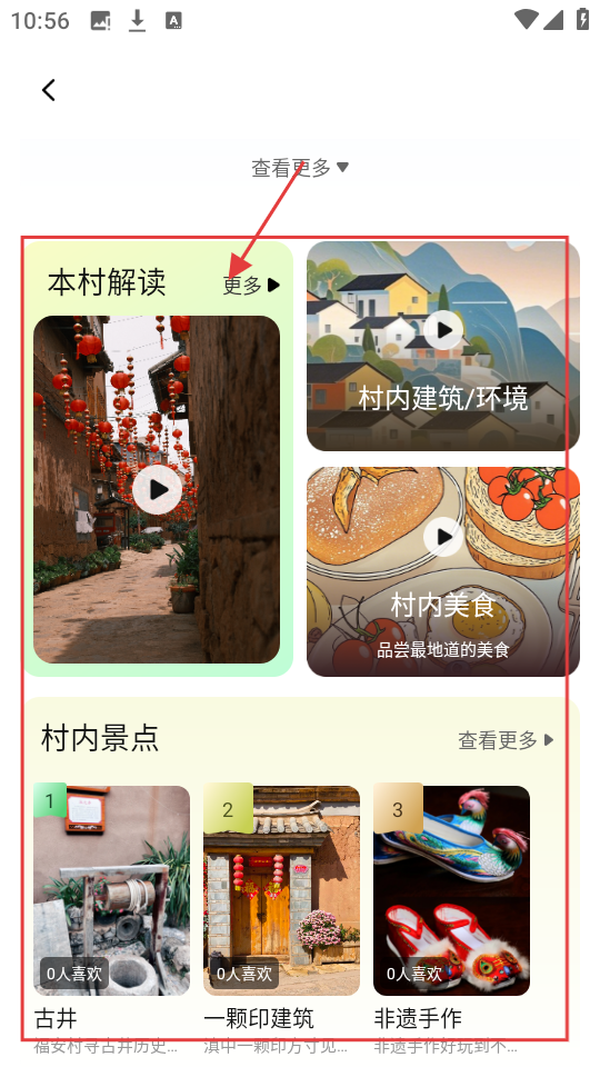 4、向上滑动,还可查看本村解读、村内景点等,深入了解村子,规划旅居行程。