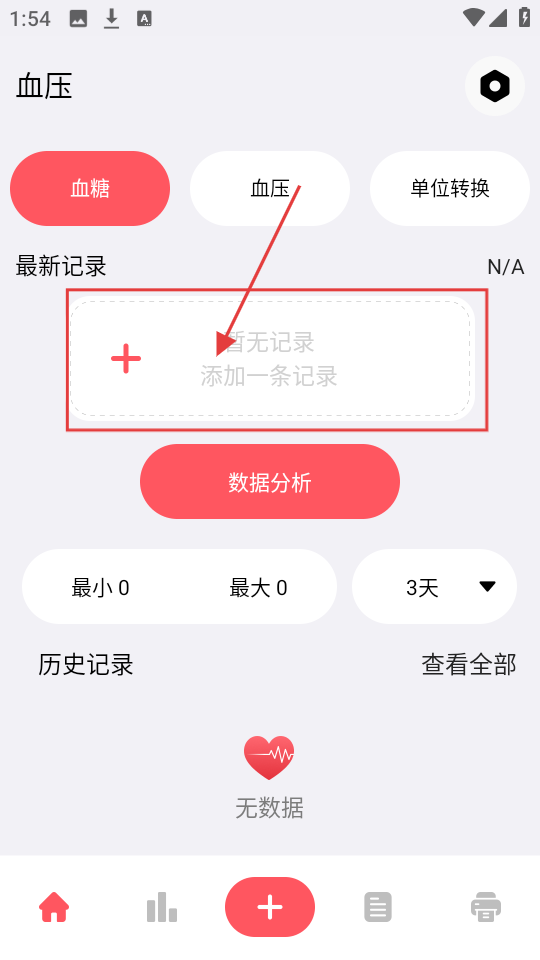 1、在血糖页面,点【添加一条记录】,进入添加血糖页面,可填写血糖相关信息。