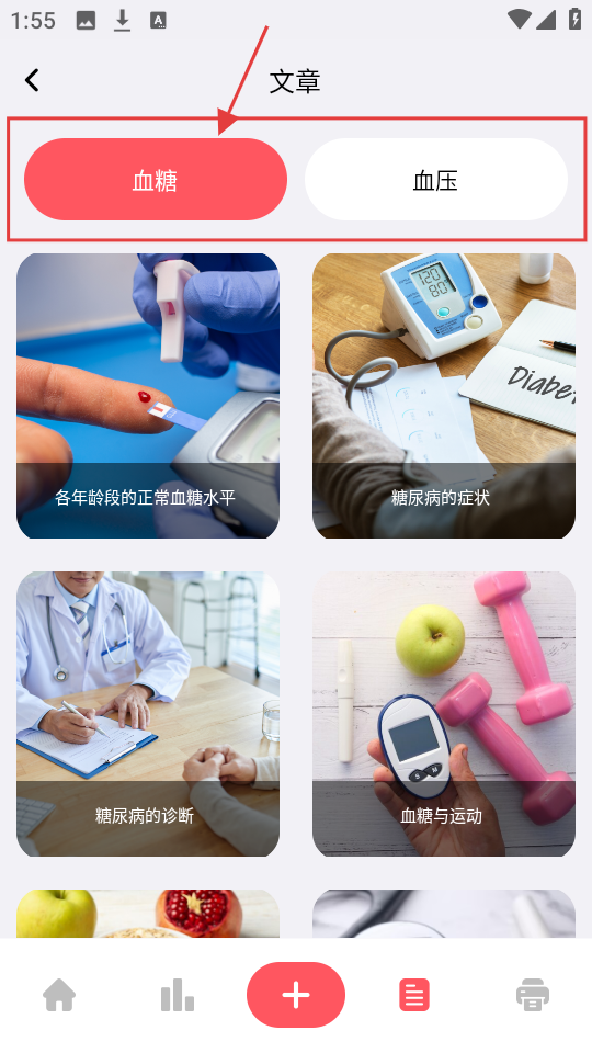 4、到文章页面,选【血糖】分类,可查看各年龄段正常血糖水平等相关文章,了解知识。
