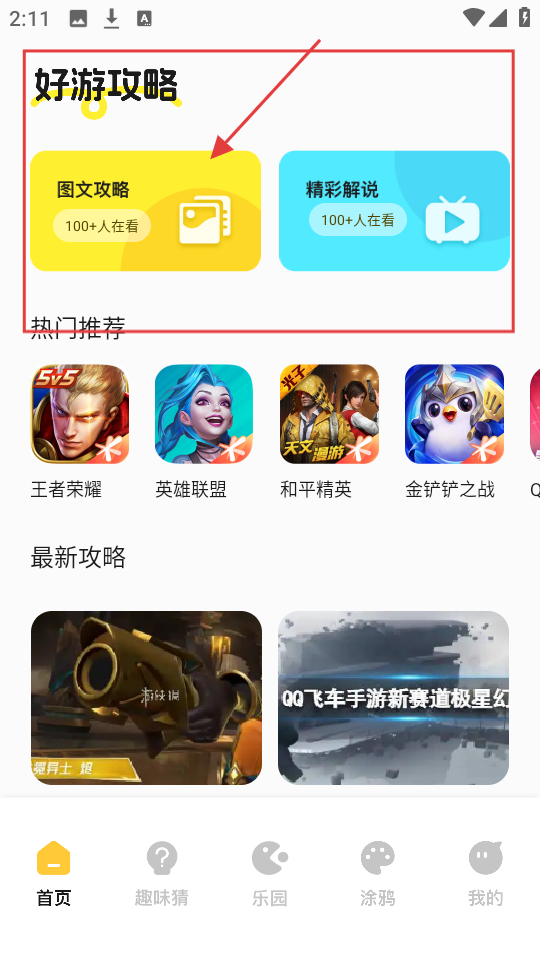 1、在首页,点【图文攻略】,进入图文攻略页面,可查看各类游戏图文攻略内容。