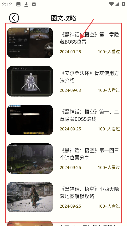 2、在图文攻略页面,选《黑神话:悟空》相关攻略,如第二章隐藏BOSS位置,查看详情。