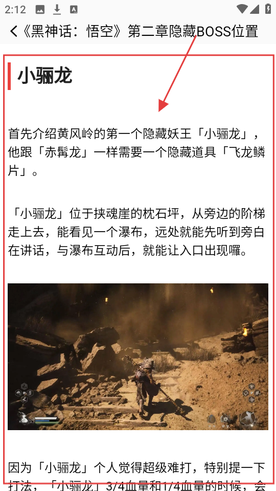 3、在攻略详情页,了解小骊龙位置等信息,按提示找隐藏道具,与瀑布互动开启入口。