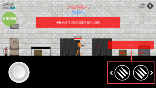 3、如何开火?按“开火”按钮击杀敌人,可在设定里调整按键位置。