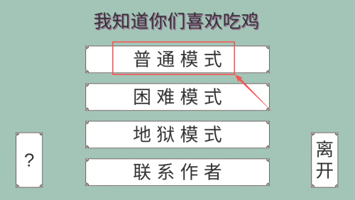 1、如何选择难度?在“我知道你们喜欢吃鸡”界面点击“普通模式”“困难模式”或“地狱模式”,即可进入对应战场,点“离开”可退出。