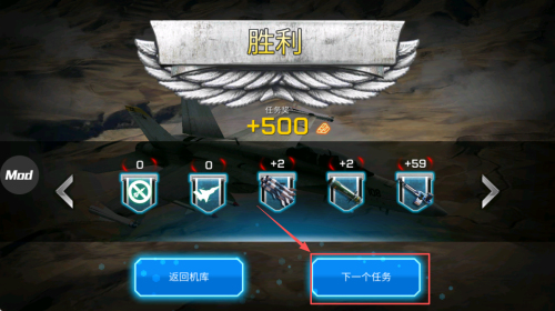 4、如何结束战斗?击落敌机后显示“胜利”,点击“下一个任务”或“返回机库”。