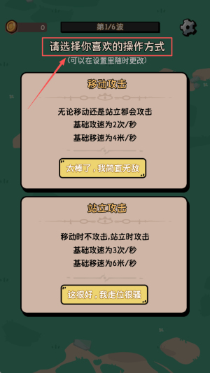 1、如何选定操作?在第1/6波界面选择“移动攻击”或“站立攻击”,设置里可随时更改。