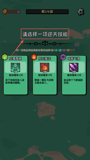 2、如何挑选技能?点击“王毒图脑”“石森击”或“暗影弹”之一获得逆天被动。