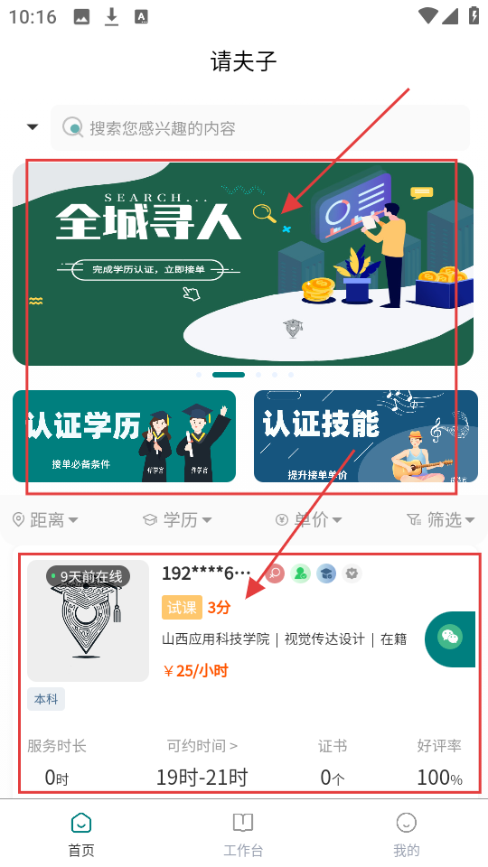 3、灵活服务模式:线上完成课程购买、任务承接等操作,线下支持上门教学服务,打破时间空间限制,让学习工作更自由。