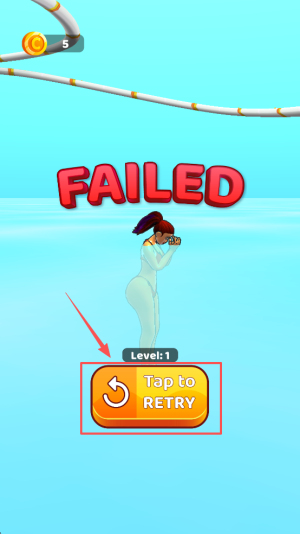 4、最后,如果游戏失败,点击“Tap to RETRY”按钮来重试当前关卡。