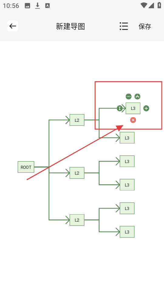 4、在思维导图编辑页,可对节点进行操作,如点【+】添加子节点,完成导图创建后点保存。