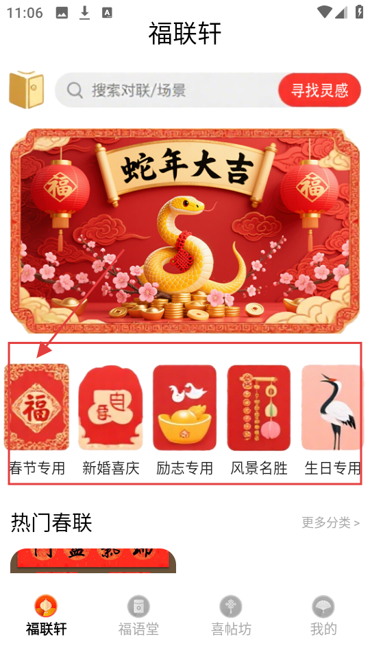 1、在福联轩里选【春节专用】,就能看到好多春节对联,挑起来超轻松。