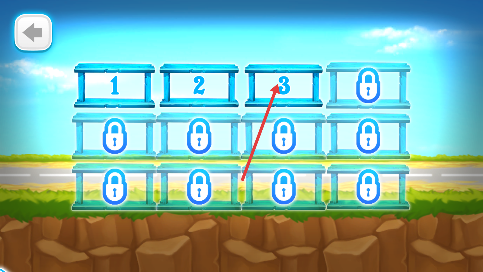 1、进入关卡选择界面,点击标有“3”的关卡,开启第3关的摩托车驾驶挑战。