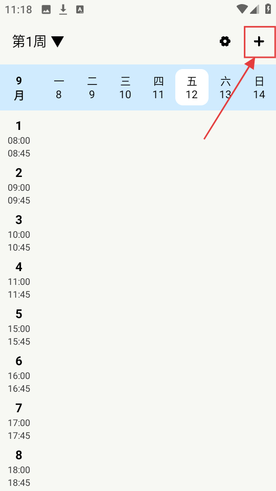 2、进入课程表页面后,点右上角的【+】号,就可以开始添加新课程咯。